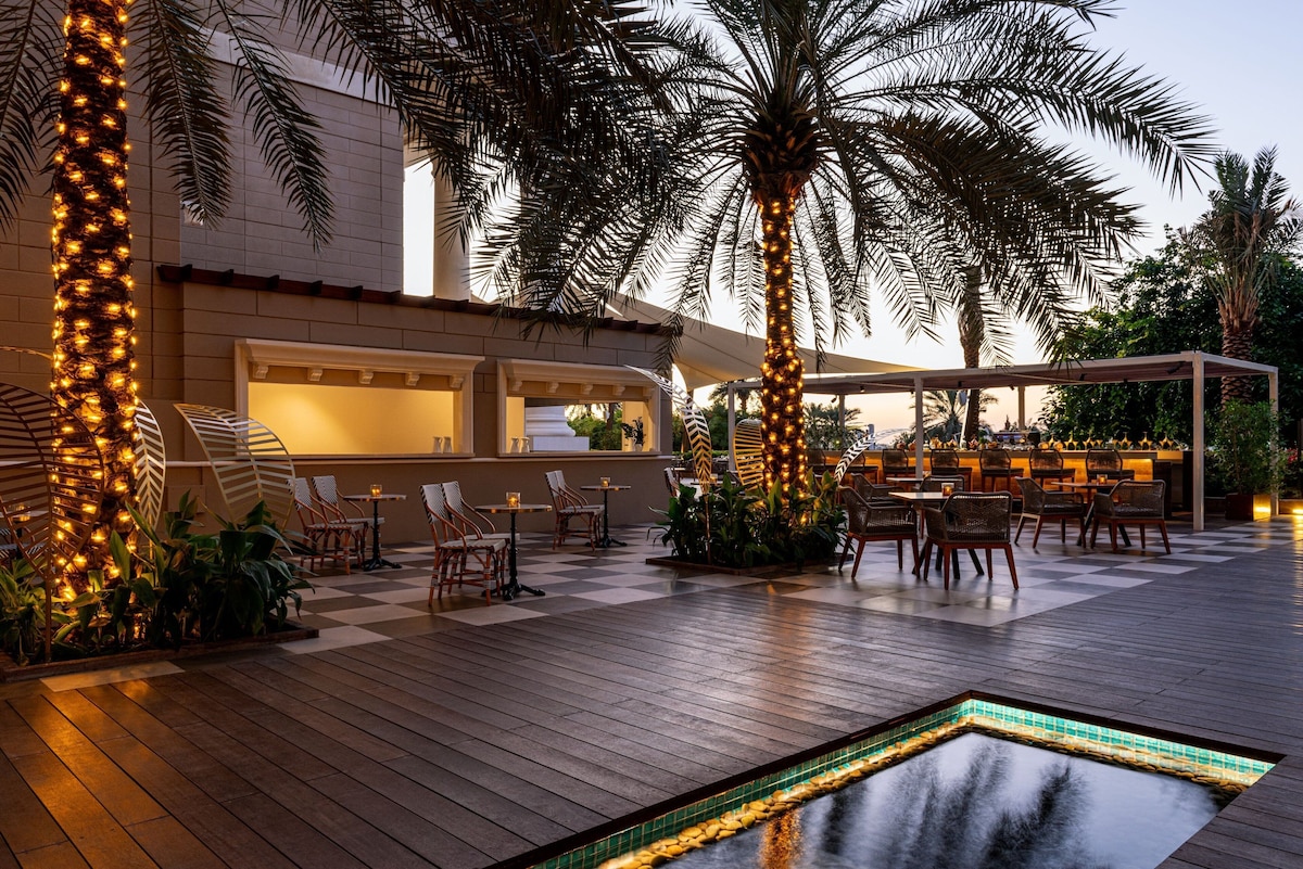 A marina, water park access, and a nightclub are available at The Westin Dubai Mina Seyahi Beach Resort & Marina. With a beachfront location, beachfront dining, and sun loungers, this hotel is ideal for soaking up the rays. Heavenly Spa by Westin, the onsite spa, offers facials, massages, and manicures/pedicures. Make a reservation at the onsite restaurant, Oeno Wine Bar. Take advantage of the 24-hour gym as well as activities such as ecotours, motor boating, and kayaking. Stay connected with free in-room WiFi, and other amenities include three swim-up bars and three poolside bars.