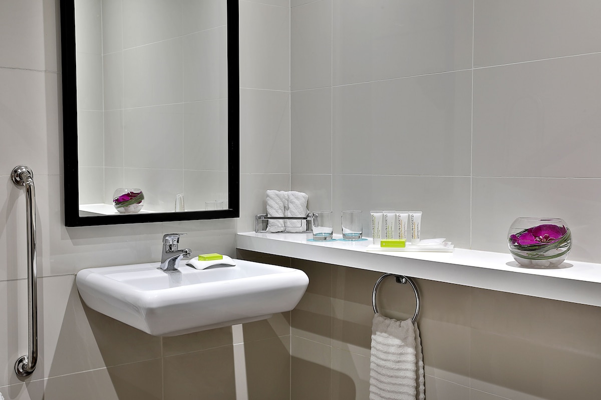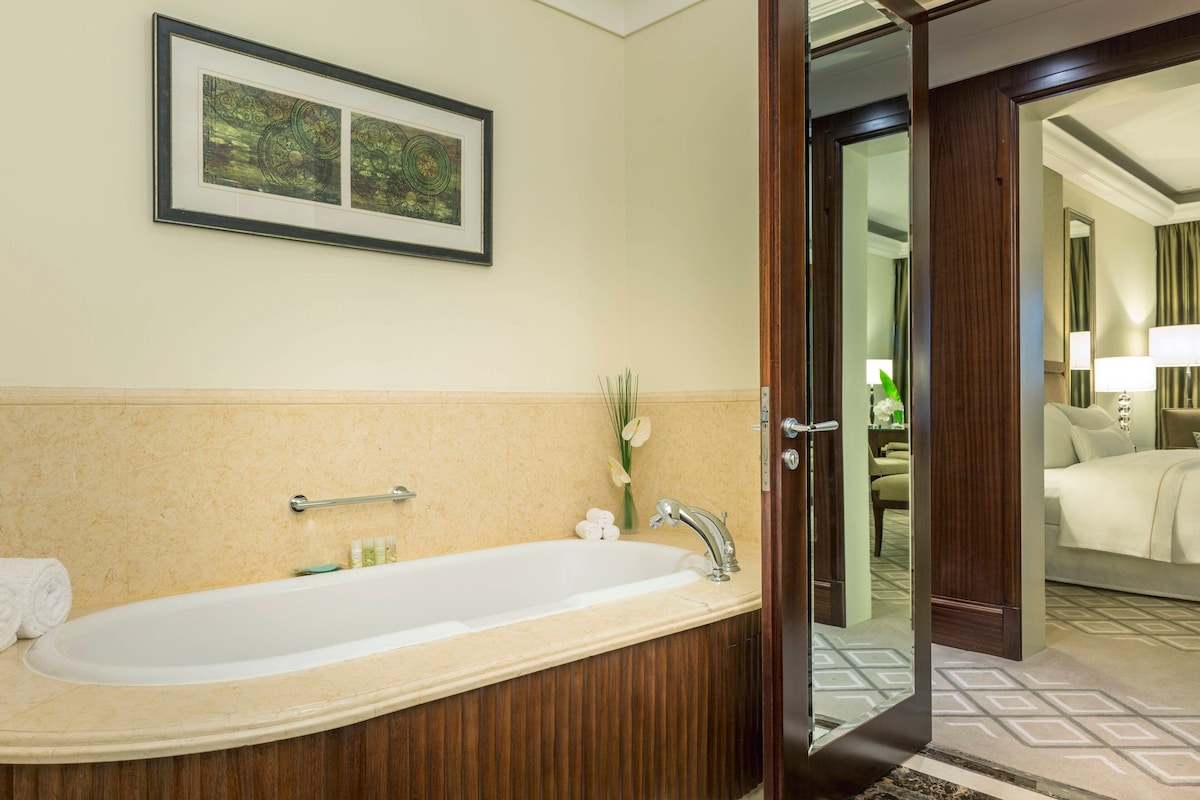 Just 15 minutes' drive from the Abu Dhabi National Exhibition Center, this 5-star hotel offers modern rooms with a private balcony. It has 2 outdoor swimming pools with sun terrace and a shaded children’s pool. Views of the on-site golf course can be enjoyed from all Westin’s open-plan rooms, which come with a flat-screen TV and Nespresso coffee maker. They have large floor-to-ceiling windows, luxurious bedding and a private bathroom with a separate bathtub and shower. A 30-minute free Golf Driving Range is included in the rates and provided at the property. Guests can relax at the Heavenly Spa by Westin which has 6 treatment rooms. There are 5 restaurants, including Sacci an Italian restaurant. There are 2 bars, and room service is available around the clock. Abu Dhabi International Airport is a 15-minute drive away and Abu Dhabi's Corniche is 20 minutes by car.