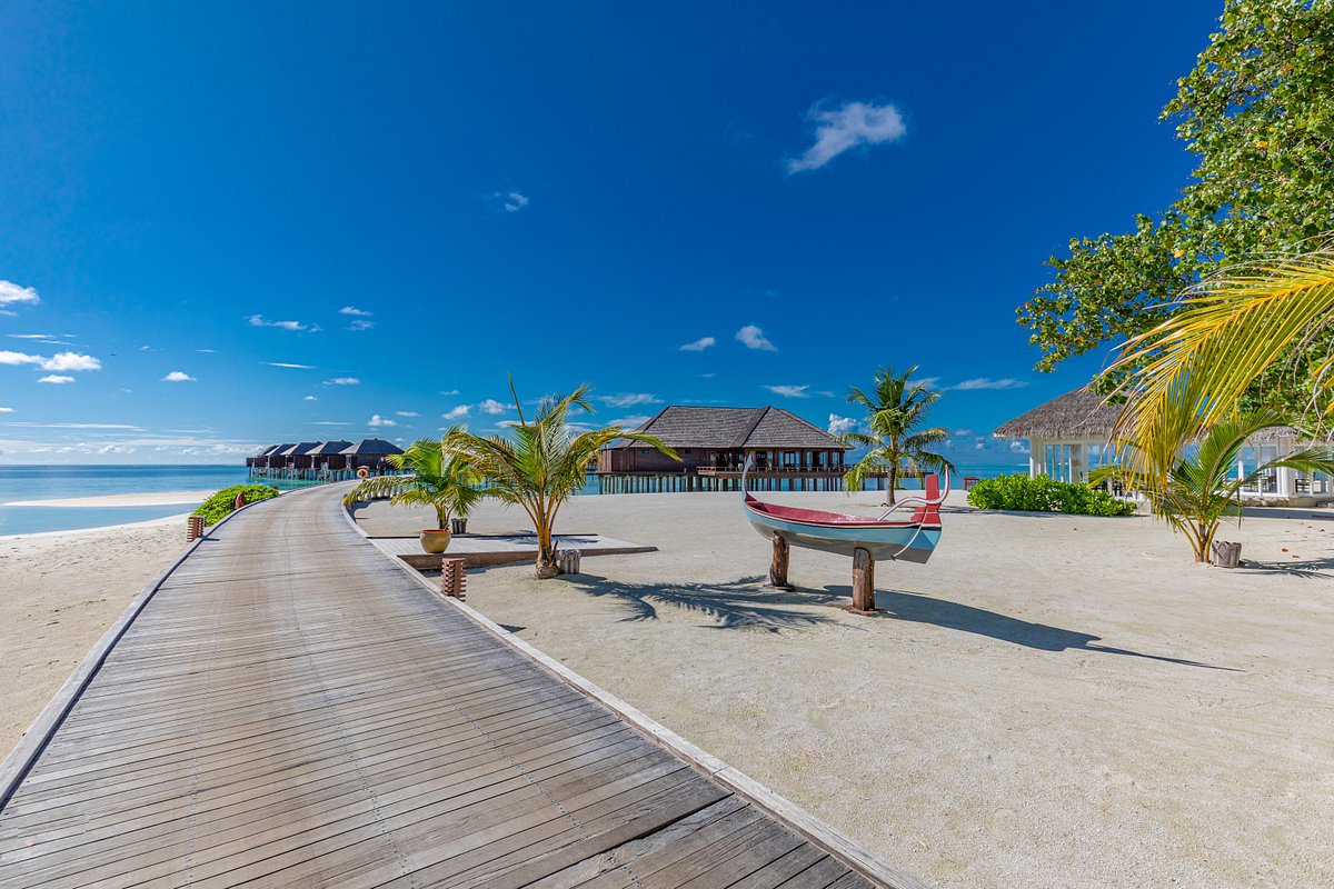 The exquisite Olhuveli Beach And Spa, located at the southernmost tip of the South Male Atoll, offers an island hideaway with two infinity pools and white sand beaches. It boasts four restaurants, three bars, and a PADI-certified dive school, all set within tropical gardens. The spacious air-conditioned rooms and villas are elegantly adorned with timber furnishings and come with a flat-screen TV, Chinese TV channels, DVD player, and minibar. A private sun deck and spa bath with views of the Indian Ocean are available in some villas. In the rooms, there is free WiFi. Sun Spa offers a variety of body massages, outdoor flower baths, and aesthetic treatments. Guests can work out in the gym, play tennis, or browse the souvenir shop. There is also a tour desk where guests can book day trips to explore the island. Assistance is available from staff who are fluent in Chinese.