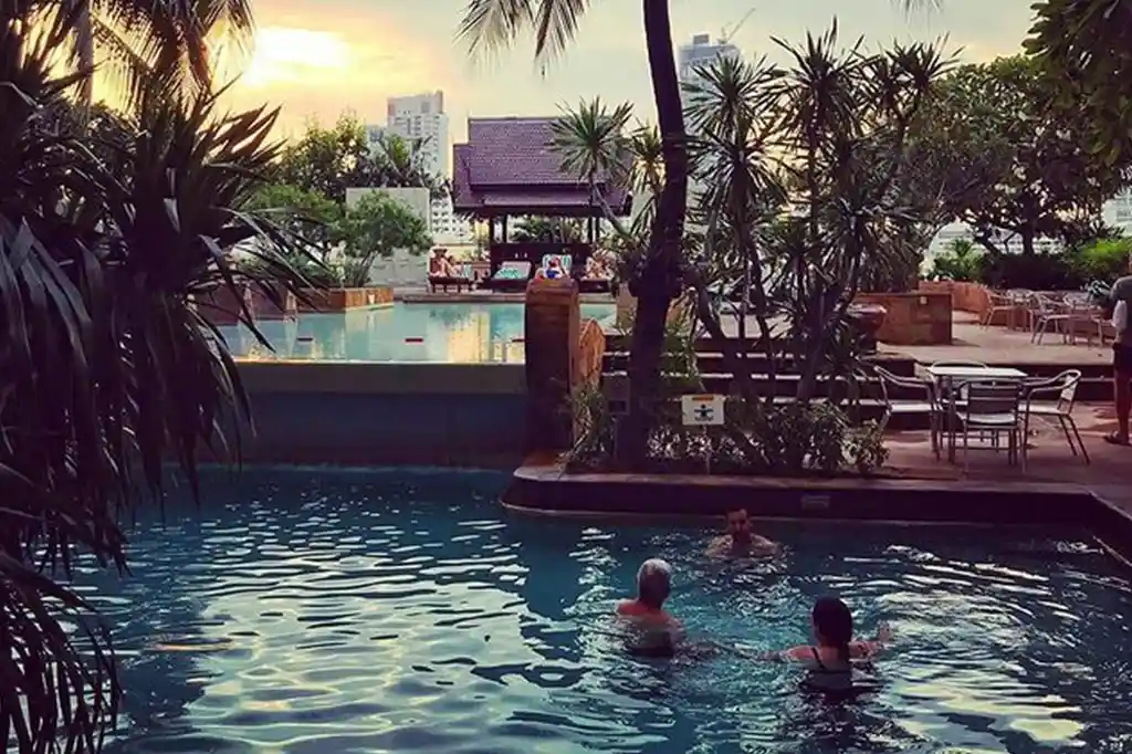 Century Park Hotel is a 5-minute walk from the Victory Monument BTS Skytrain Station in Bangkok's lively city centre. It offers a rooftop garden, a pool, and a fitness centre, as well as five eating options. Air-conditioned rooms feature carpeted floors and wooden furnishings, as well as a satellite TV and a minibar. A big bathtub and a separate shower stall are included in the spacious marble bathrooms. The Pratunam Wholesale Market is less than 500 metres away, while the MBK Shopping Centre is 2 kilometres away. Guests can take use of the hotel's daily shuttle service to famous shopping destinations. The front desk staff is available 24 hours a day to assist clients with massage treatments and transportation services. The hotel provides ticketing, laundry, and currency exchange services for its guests' convenience. The business centre offers fax and photocopy services. JESS serves worldwide buffet meals, while Roberto serves Italian cuisine. Patisserie specialises on cakes and pastries. Cocktails and live music are offered in the evenings at Signature Bar or Fountain Lounge.