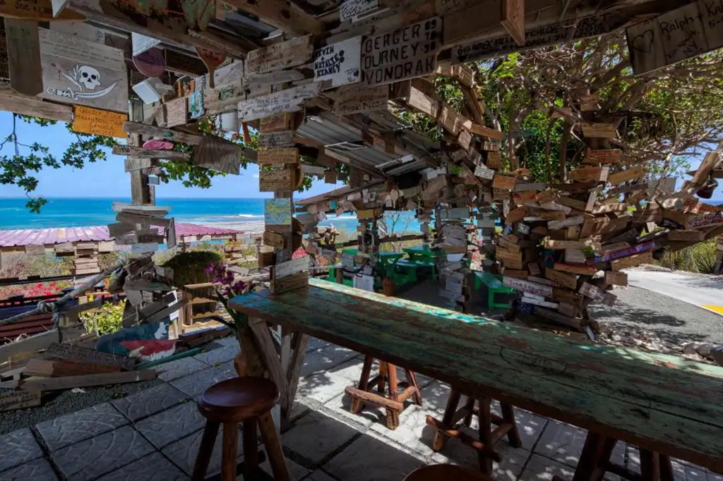 The Outhouse Bar – Toast to bottomless beer and stunning sunsets from our scenic and wonderfully rustic hilltop bar overlooking the turquoise sea.
