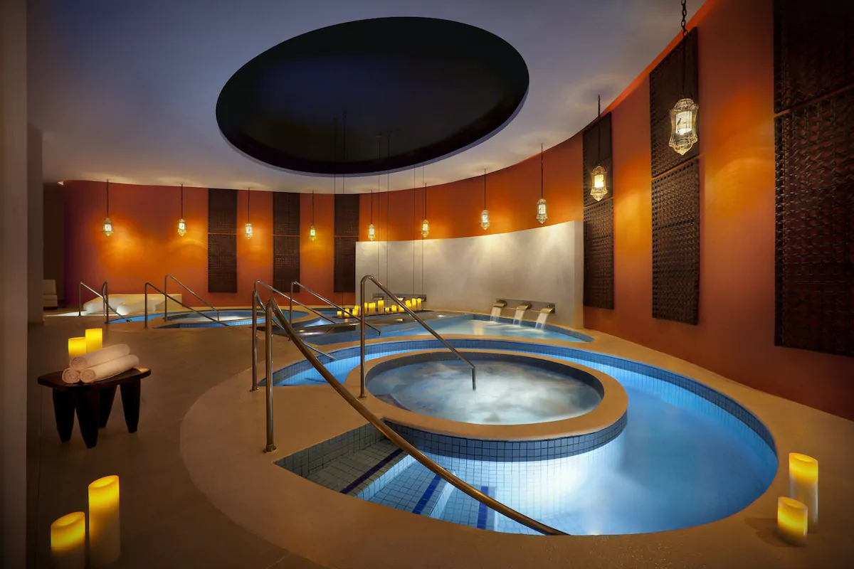 • Rock Spa® – 72 individual cabins, 2 DOME suites (Rhythm and Motion), 5 Master individuals (with Jacuzzi), 8 Couple Spa suites, 2 Master couple (with Jacuzzi), 2 Golden VIP suites, 6 Palapas couples, 3 individual cabins at the gym plus 1 R&M individual. Also available: hydrotherapy facilities and co-ed vitality pool, hydrotherapy center with lagoons, two whirlpools, steam room, sauna, hydro-reflexology, sensory expertise pool, and a cutting-edge ice room. – $